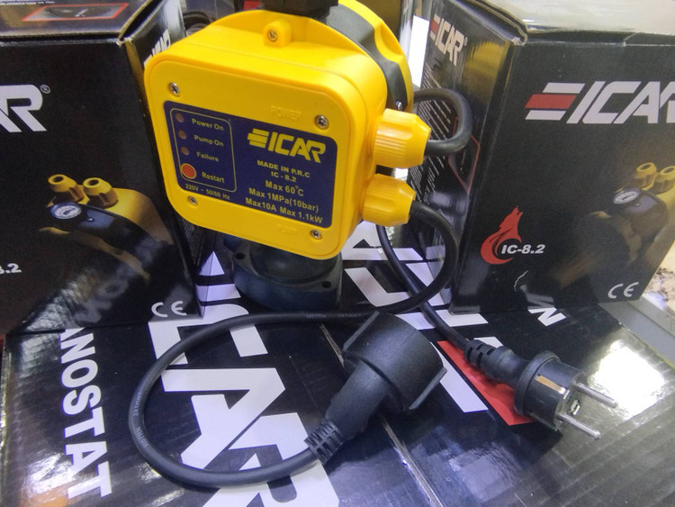 ست کنترل ایکار ساخت کشور چین است و دارای ورودی و خروجی یک اینچ می باشد و برای کار در فشار یک تا ده بار و حداکثر دمای آب 60 درجه سانتی گراد طراحی شده. حداکثر جریان آن 10 آمپر است و دارای درجه حفاظت IP 65 در برابر ورود آب و گرد و غبار می باشد ، این ست کنترل قابلیت تنظیم فشار شروع کارکرد در زمان نصب اولیه را دارد و نیازی به سرویس و تنظیمات دوره ای ندارد.